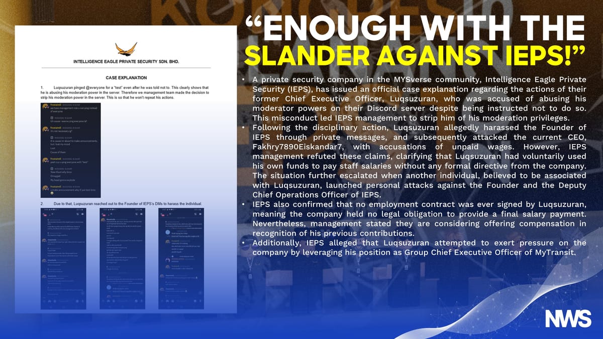 In an official case explanation, Intelligence Eagle Private Security clarified their dispute with former Chief Executive Officer Luqsuzuran, concerning allegations of abuse of power, harassment, attacks against company members and false accusations against the security firm.
